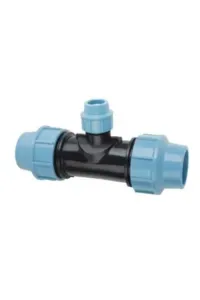 PE trójnik skręcany redukcyjny fi 40/32 – łączy rury o średnicach 40 mm i 32 mm. Zape...
